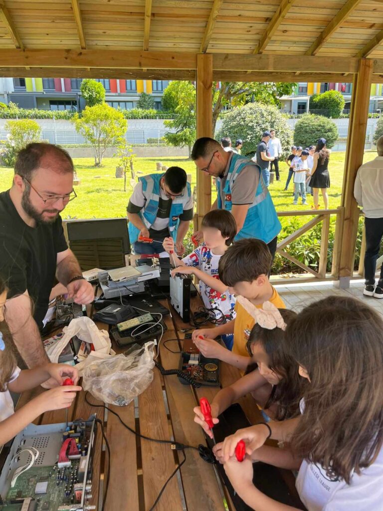 Çocuklar, Elektronik Atık İnceleme ve Sökme Atölyesi sayesinde elektronik atıkların geri dönüşüm süreçlerini yakından tanıma fırsatı buldu.